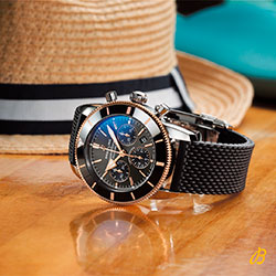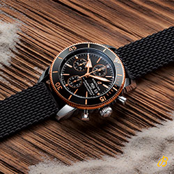 Изумительное сочетание стали с золотом подчеркивает великолепие модели Superocean Héritage II B20 Automatic 44 с черным циферблатом и черным каучуковым ремешком Aero Classic. Эти эксклюзивные часы также доступны в размере 42 мм. Окошко даты в положении «6 часов» – неотъемлемый атрибут каждого представителя семейства Superocean Héritage II B20.