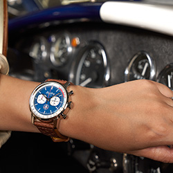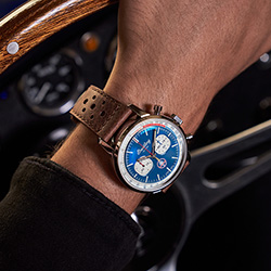 И, наконец, модель Top Time Shelby Cobra в синем и коричневом цветах. Она создавалась под вдохновением от легендарного автомобиля, который был разработан знаменитым американским автогонщиком и автомобильным конструктором Кэрроллом Шелби для соревнований 1960-х годов. В Shelby Cobra классическая британская конструкция шасси сочеталась с американскими гоночными технологиями. Напоминанием об этом выдающемся автомобиле служит цветовое решение часовой модели: синий цвет циферблата с белыми гоночными полосами.