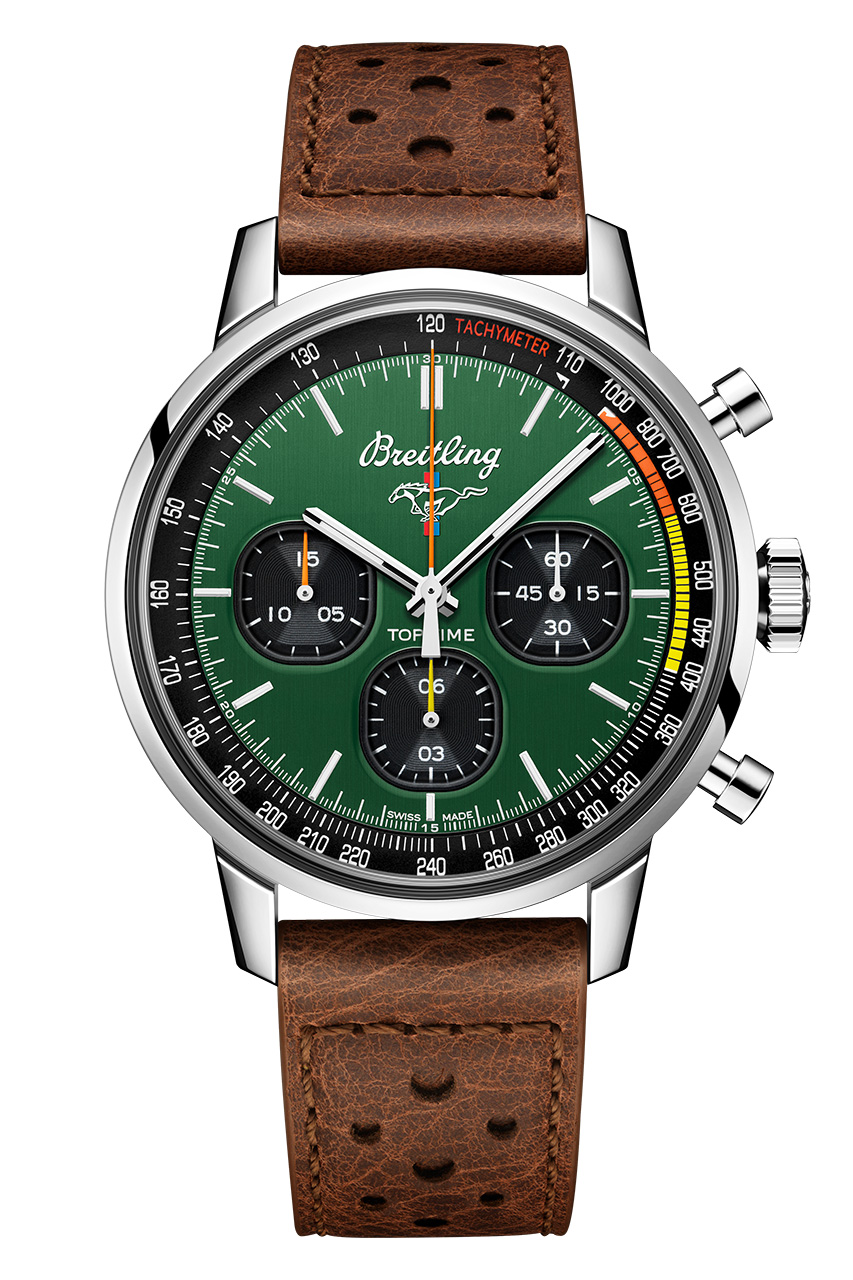В корпусе диаметром 42 мм моделей Chevrolet Corvette и Ford Mustang заключен мануфактурный механизм Breitling 25, сертифицированный Швейцарским институтом официального тестирования хронометров (COSC), механизм хронографа с автоподзаводом, обладающий точностью до 1/8 секунды и запасом хода около 42 часов. Обе модели обладают тахиметрической шкалой и тремя дополнительными циферблатами черного цвета. На основном циферблате в положении «12 часов» расположены логотипы автомобилей.