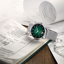 Часы DS-1 Big Date 60th Anniversary имеют темно-зеленый циферблат, красота которого подчеркнута классической элегантностью браслета с миланским плетением. Они оснащены часовым механизмом с автоматическим подзаводом, задающим новые стандарты устойчивости к воздействию магнитных полей. Это стало возможно благодаря инновационной пружине баланса Nivachron™. Ведь традиции должны быть неизменны.