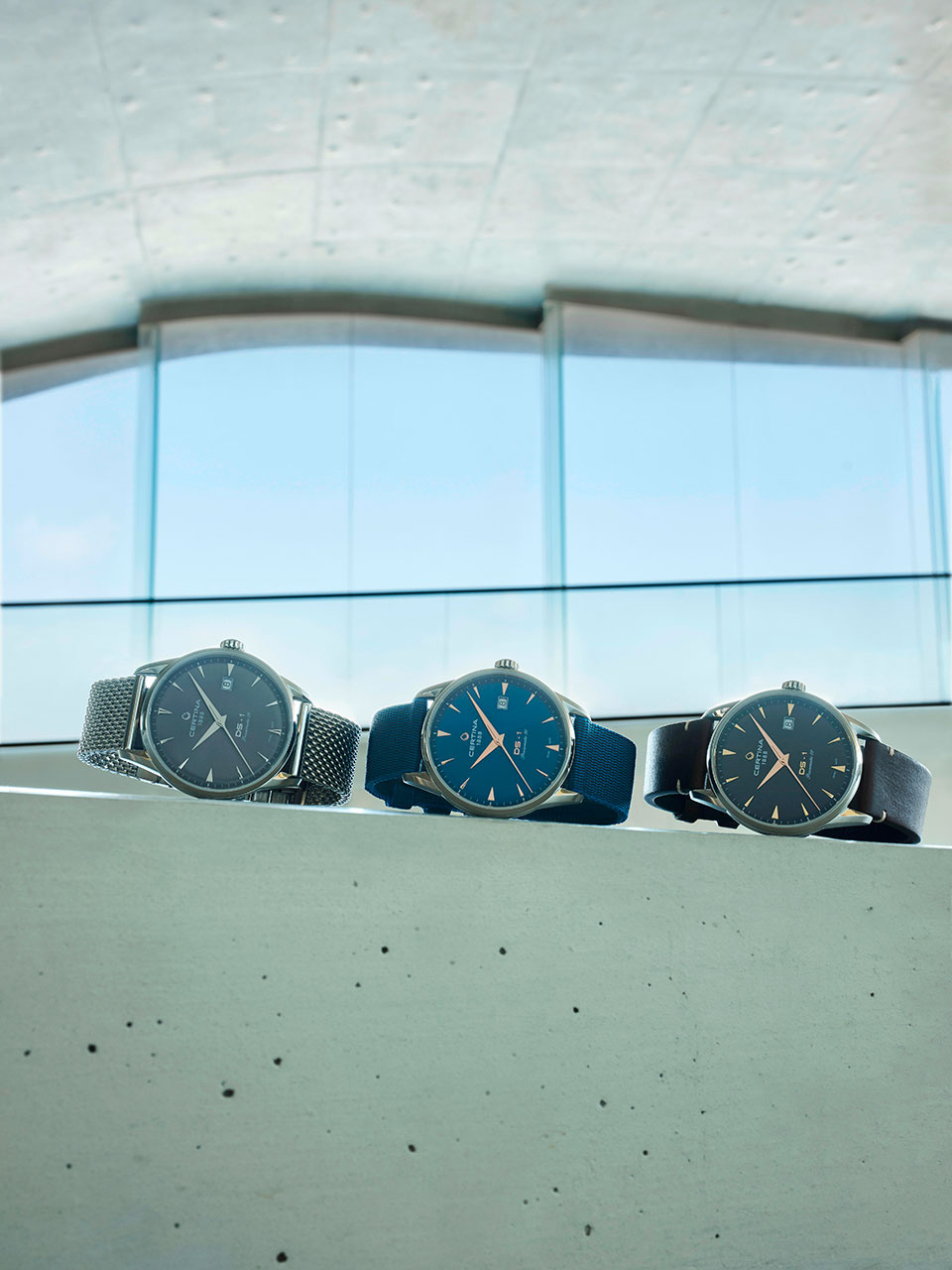 Коричневая модель с акцентами цвета желтого золота дополнена браслетом из нержавеющей стали миланского плетения и темно-коричневым кожаным ремешком. Светло-серая модель DS-1 Powermatic 80 выполнена в лаконичном современном дизайне. Серебристые стрелки и часовые отметки гармонируют с браслетом миланского плетения и серым текстильным ремешком из материала #tide ocean material®. Версия в синем цвете – самая ультрамодная: элементы с напылением из розового золота комбинируются со стальным браслетом из пяти рядов звеньев и синим текстильным ремешком из материала #tide ocean material®. Все три модели оснащены системой быстрой замены ремешка, выпуклым сапфировым стеклом, прозрачной задней крышкой корпуса и, естественно, системой двойной надежности Double Security (DS).
