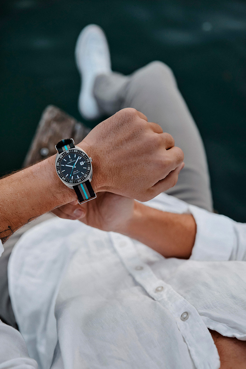В 1960-х годах предшественники модели DS-2 Turning Bezel установили стандарты надежности и актуального стиля. Новая коллекция не уступает им во всех отношениях. Корпус в форме бочонка (42 x 41 мм) оснащен вращающимся в одном направлении безелем. В то время как модели регулярной коллекции выпускаются из классической нержавеющей стали, серия Sea Turtle Conservancy Edition изготовлена из сверхлегкого титана. Матовый черный циферблат идеально сочетается с прямоугольными стрелками и индексами с покрытием Super-LumiNova®. Модели данной серии комплектуются серо-синим ремешком в полоску из материала #tide ocean material® с титановой застежкой. К стальным версиям прилагается сменный ремешок.