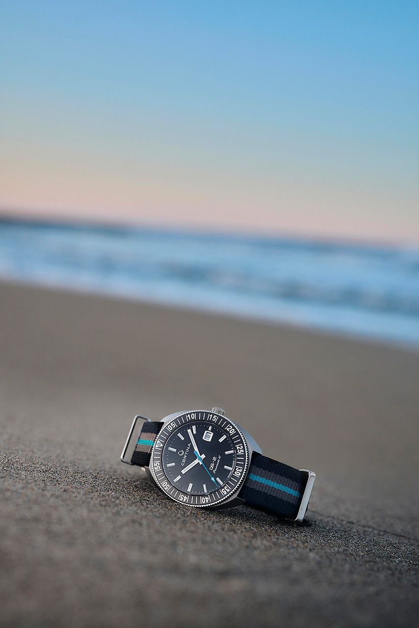 Новая модель DS-2 Turning Bezel швейцарской часовой мануфактуры Certina с корпусом в форме бочонка и винтажным дизайном возвращает к жизни «свингующие» 60-е. Однако «сердце» часов в полной мере соответствует современным стандартам: механизм с автоподзаводом, оснащенный балансовой спиралью NivachronTM, обеспечивает 80-часовой запас хода. Специальная серия моделей Sea Turtle Conservancy Special Edition в серо-синей гамме с рисунком в полоску ориентирована на будущее, призывая к защите океанов и их обитателей.