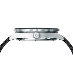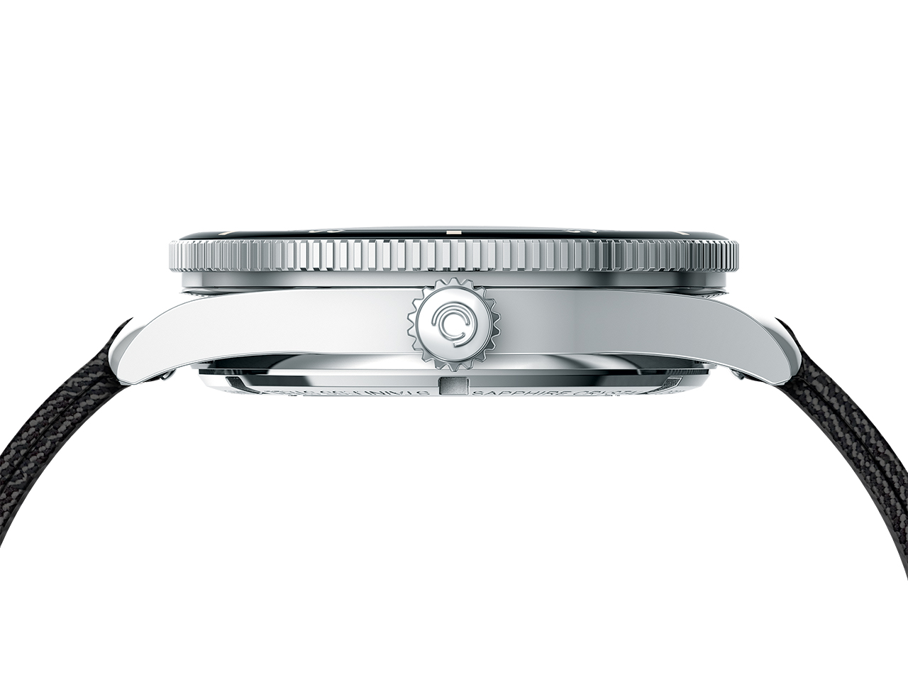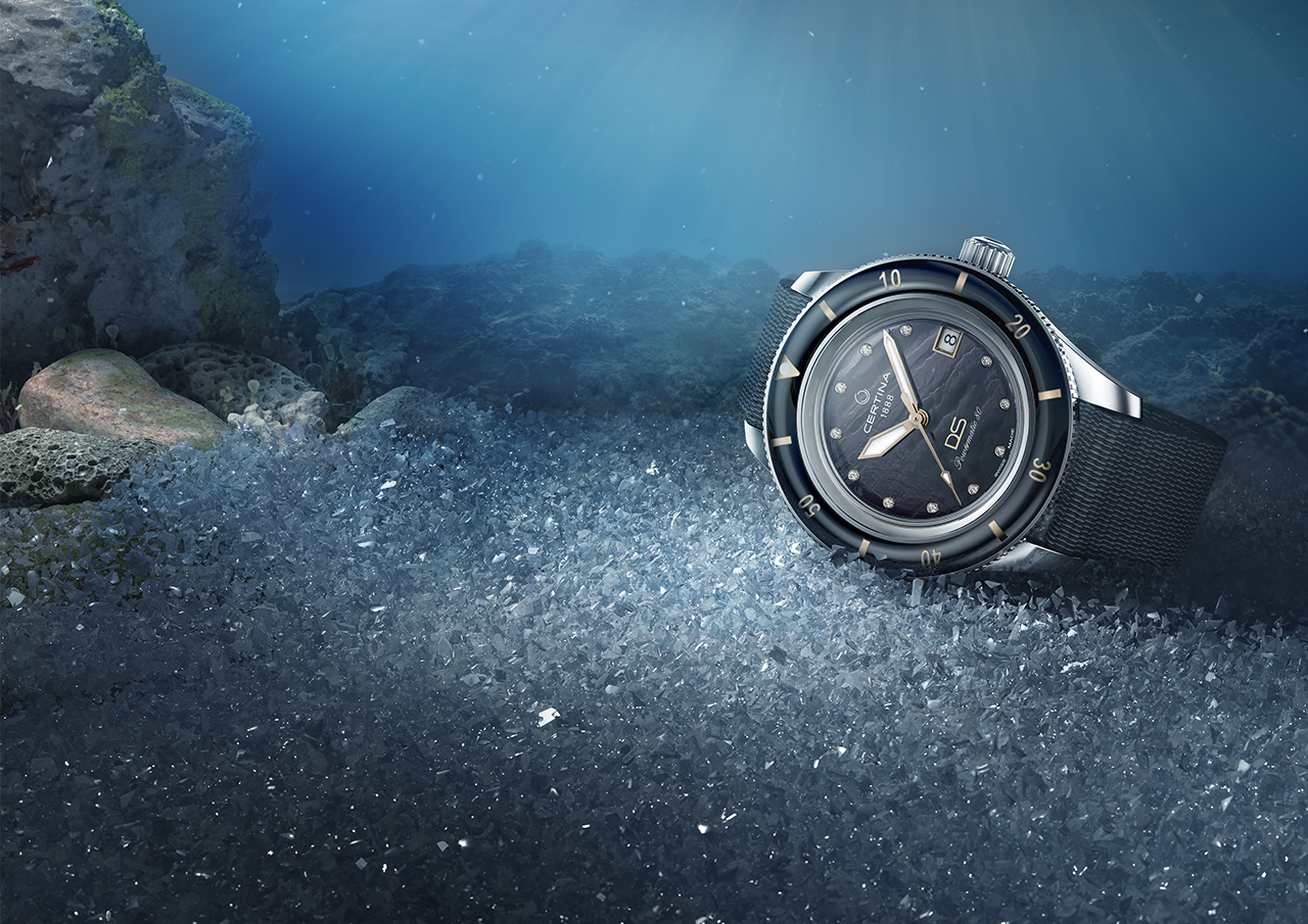 Ремешок и упаковка часов выполнены в экологически ответственном ключе. Антрацитовый синтетический ремешок изготовлен из материала #tide ocean material®. Название говорит само за себя: пластиковый мусор, собранный в океане, перерабатывается в прочные и высококачественные ремешки для часов. Часы поставляются в черно-золотой упаковке, изготовленной из экологичного картона, легко поддающегося переработке.
