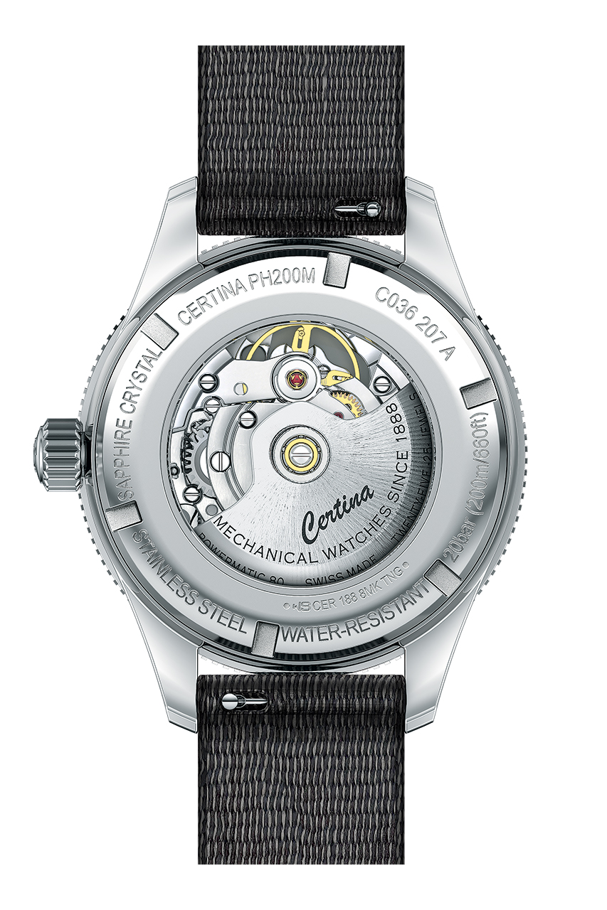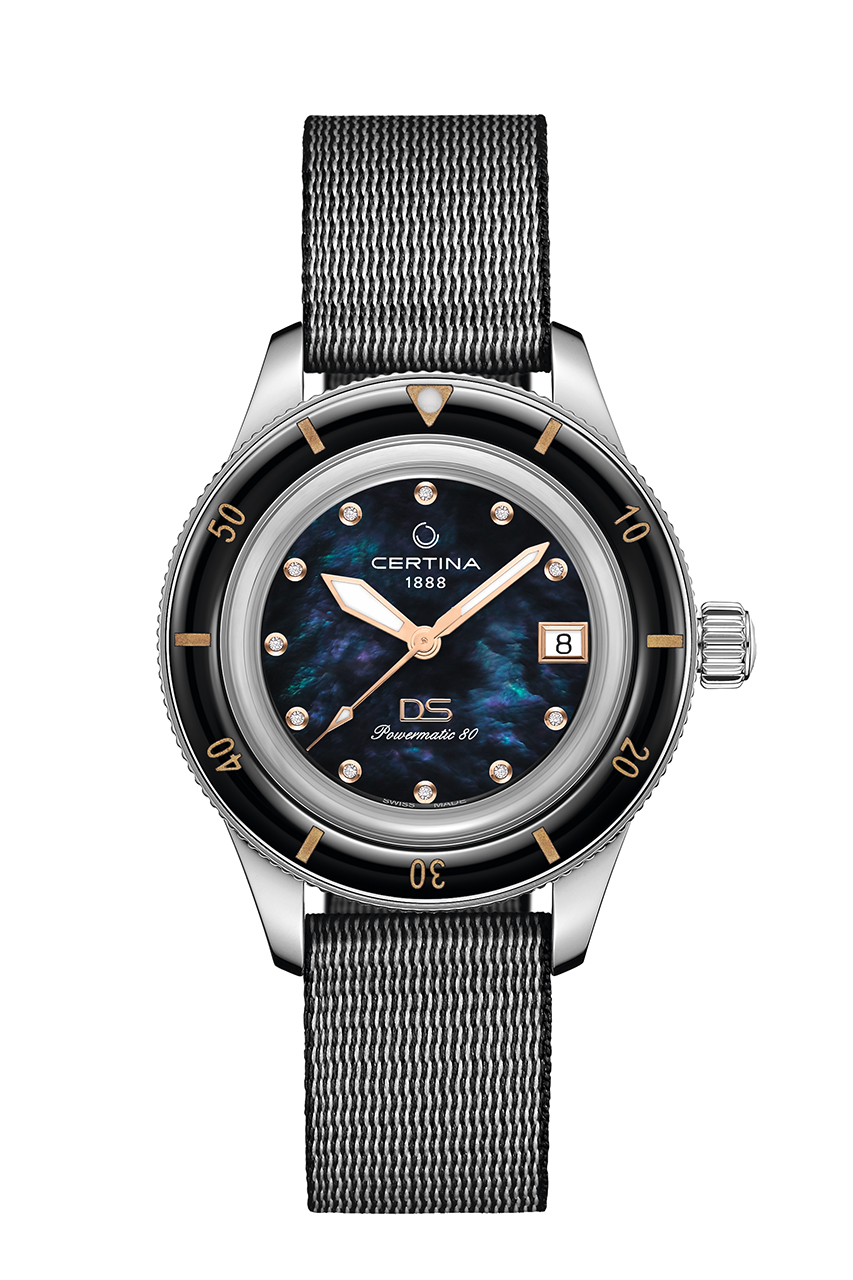 Подписчики марки в социальных сетях с особенным трепетом ждали презентации новой модели: уникальный международный конкурс позволил им повлиять на дизайн новых часов Certina. В течение двух недель ценители часового искусства со всего мира имели возможность выбирать между различными элементами дизайна: варианты исполнения безеля, циферблата, стрелок, ремешка и даже упаковки были выставлены на голосование. Получившийся дизайн оказался одновременно изысканным и ярким. Часы диаметром 39 мм заключены в круглый корпус из нержавеющей стали с переливающимся черным перламутровым циферблатом и одиннадцатью бриллиантовыми часовыми отметками. Функциональные особенности модели включают указатель даты на отметке «3 часа», завинчивающуюся заводную головку и однонаправленно вращающийся безель из черной керамики, устойчивой к появлению царапин. Безель и стрелки цвета розового золота имеют акценты из люминесцентного материала Super-LumiNova®.
