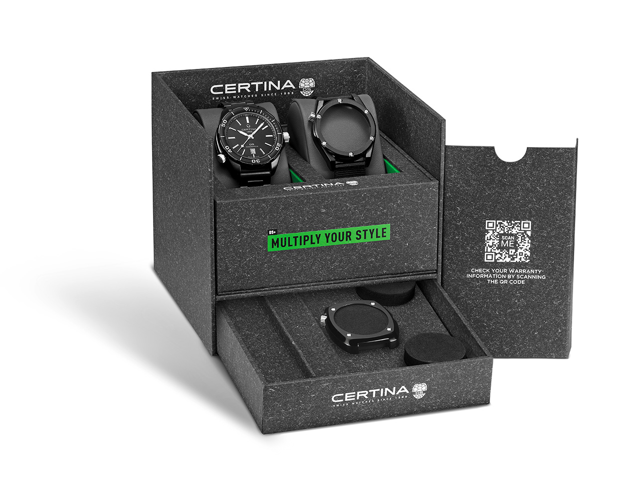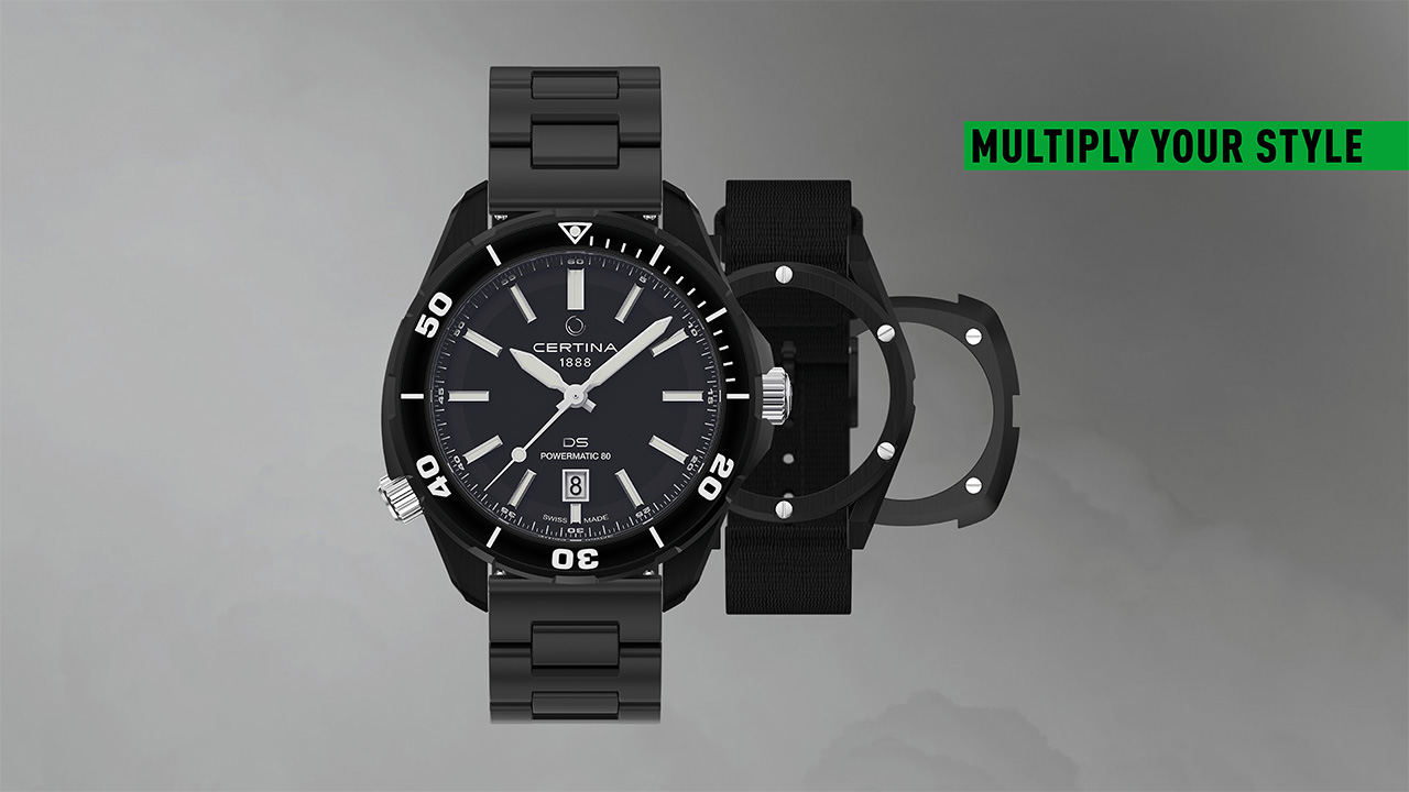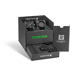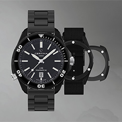 Инновационный комплект часов DS+ от марки Certina представляет собой новую концепцию, в которой один аксессуар объединяет в себе несколько стилей. Сочетание трехсоставной конструкции позволяет владельцам DS+ наслаждаться разнообразием стильных ремешков и корпусов. Новая коллекция расширяет возможности персонализации с тремя новыми черными корпусами, которые легко комбинируются с браслетами из нержавеющей стали или ремешками из синтетической ткани. Теперь доступно шесть новых стилей с помощью трех корпусов и двух видов ремешков.