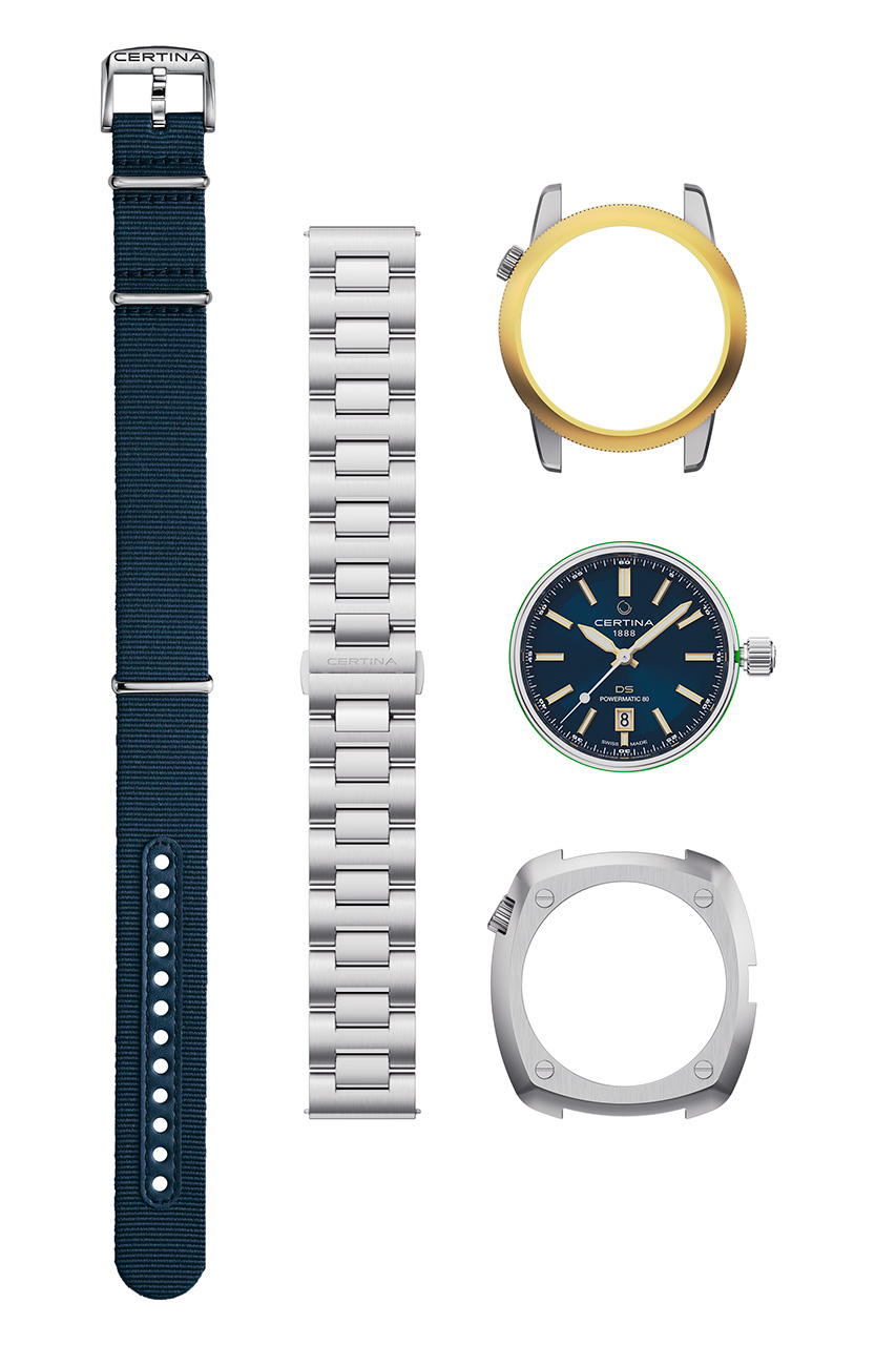 Секрет DS+ заключается в конструкции, состоящей из трех частей: модуля механизма с циферблатом, корпуса и ремешка. Каждый из трех элементов представляет собой самостоятельную единицу, которую можно по желанию комбинировать с двумя другими. Модуль механизма круглой формы, доступный с тремя вариантами циферблата, комбинируется с одним из шести корпусов из нержавеющей стали и надежно закрепляется с помощью заводной головки на корпусе. Инновационная прокладка из биоматериала обеспечивает идеальное уплотнение. Ушки, расположенные на корпусе, позволяют использовать систему быстрой замены Certina для крепления выбранного ремешка. Бутики Certina предлагают новую модель в виде трех комплектов, каждый из которых состоит из модуля механизма, двух корпусов и двух ремешков. Все составные части также можно приобрести отдельно.