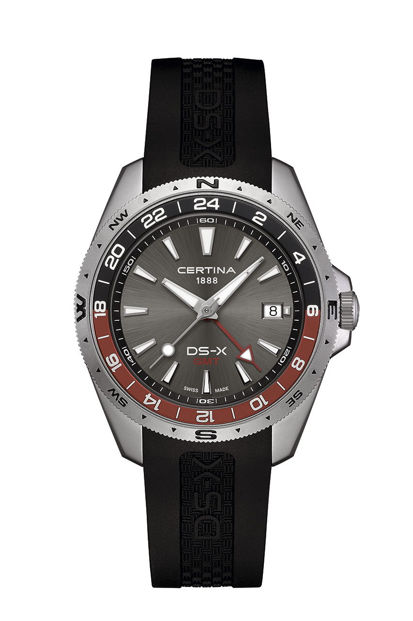 Познакомьтесь с DS-X — новой коллекцией Certina, созданной для тех, кто выходит за рамки привычных маршрутов: диаметр 41 мм, вращающийся безель с разметкой «роза ветров», фиксированный безель GMT и 24-часовая стрелка для отслеживания двух/трёх часовых поясов, водозащита до 200 м, защищённая заводная головка, технология HeavyDrive™ и Super-LumiNova® для видимости в темноте. Пять смелых стилей, три резиновых ремешка и два стальных браслета произведённые в Швейцарии, прочные и надёжные. Их задача: не отставать от вас.