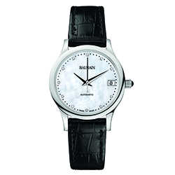 | 7. Classic R Lady Automatic B3991.32.86: стальной корпус и чёрный кожаный ремешок; белый перламутровый циферблат с одиннадцатью бриллиантами «Wesselton» в виде условных индексов. | |