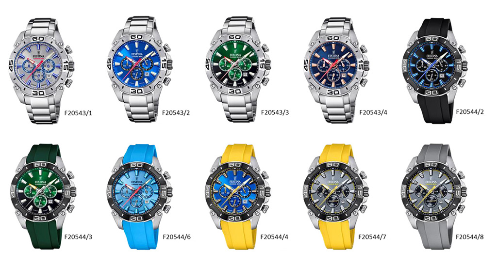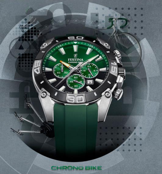 В продолжение успешных выпусков прошлых лет Festina представила коллекцию спортивных хронографов Chrono Bike. Отмечая исторически сложившиеся связи с миром велогонок, Festina запустила в производство еще более широкую линейку, добавляя новые цвета, декоративные элементы. Теперь хронографы FESTINA представлены в очень широком ценовом диапазоне.