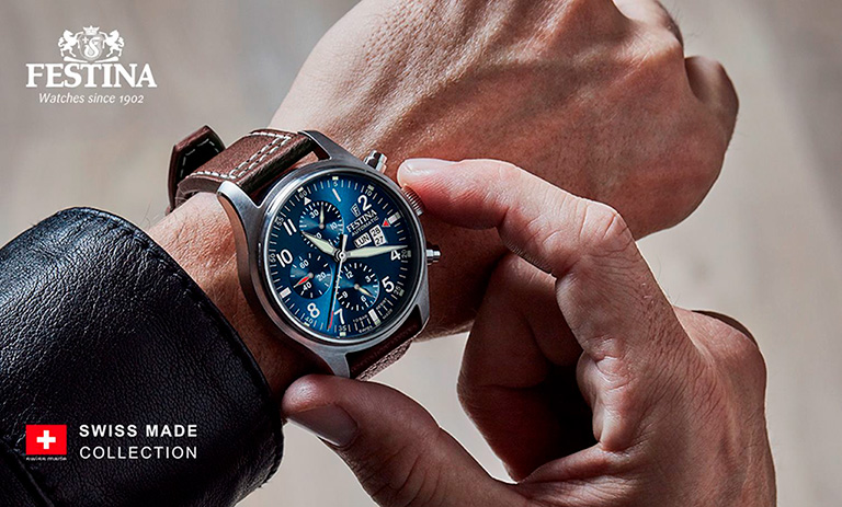 Линейка Swiss Made бренда Festina пополнилась механическими часами с автоподзаводом – хронографом F20150. Эти часы выполнены в традиционном дизайне пилотских часов с красной стрелкой.