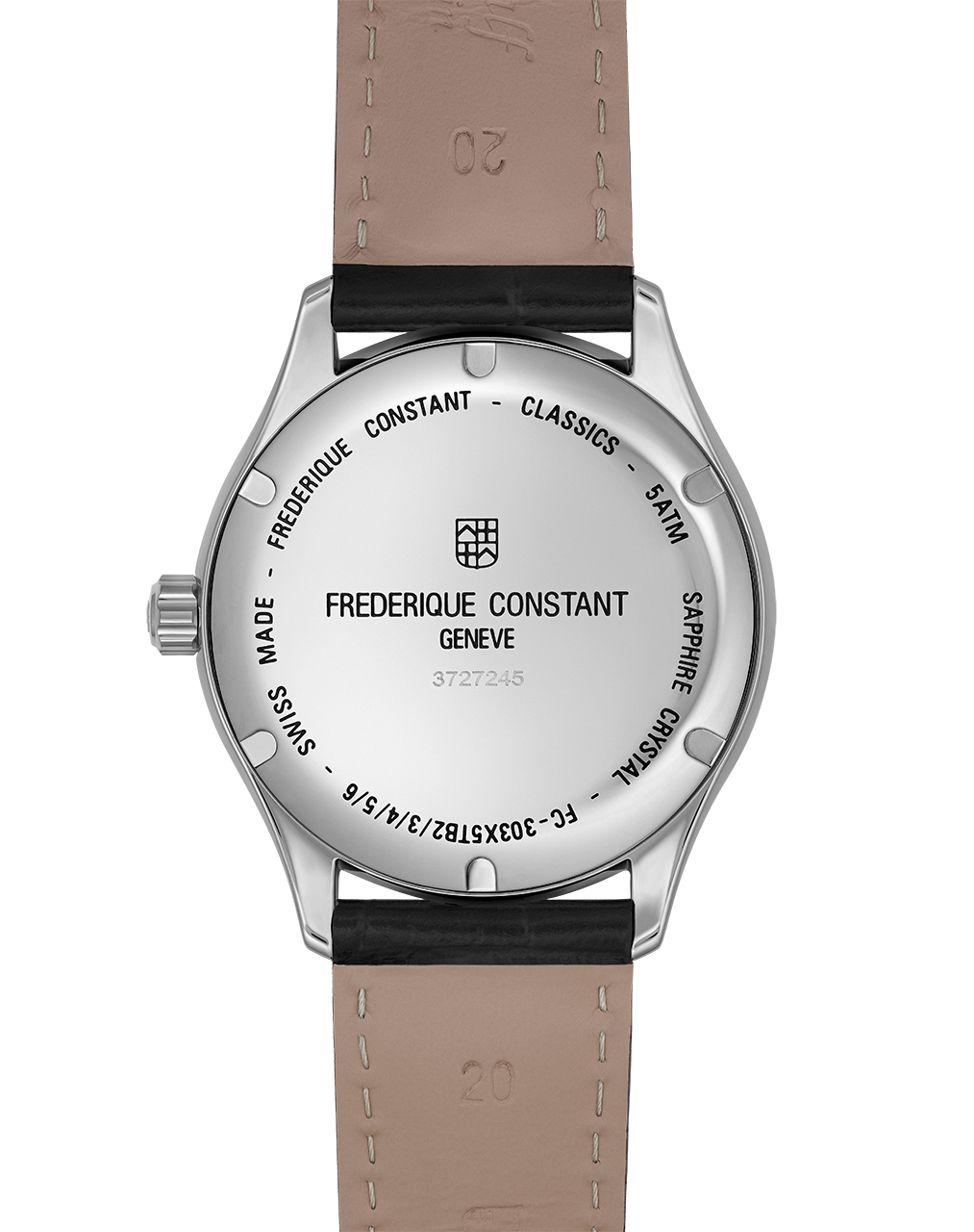 Две другие модели имеют корпус из стали. Одна из них представлена с серебристым циферблатом, другая – с циферблатом цвета хаки, и обе дополнены черным ремешком из кожи. Каждая модель оснащена автоматическим калибром FC-303 с запасом хода 38 часов.