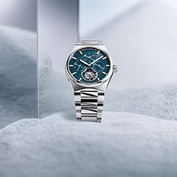Эта лимитированная модель имеет стильный корпус из нержавеющей стали диаметром 41 мм и элегантный синий циферблат, сочетая современный дизайн с традиционными часовыми технологиями.