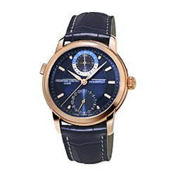 Серия часов Frederique Constant Hybrid Manufacturing выходит на рынок с тремя новыми моделями и двумя версиями циферблата. Посеребренный циферблат в корпусе из полированной нержавеющей стали с покрытием из розового золота и темно-синий циферблат в корпусе из нержавеющей стали с покрытием из розового золота.