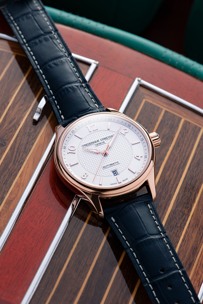 Коллекция Runabout, созданная Frederique Constant в 2009 году, посвящена истории легендарных яхт, которые создаются из дерева в Италии, на берегах озера Изео. Недавно коллекция пополнилась двумя новыми лимитированными сериями, которые включают 888 экземпляров модели Runabout Automatic. Элегантные спортивные часы, вдохновленные прогулочными яхтами, выполнены из розового золота с покрытием или из стали.