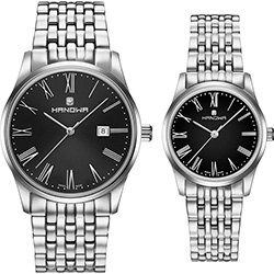 | 3. Hanowa Carlo & Carla 16-8066.04.007 SET: стальные корпуса и стальные браслеты; циферблаты чёрного цвета с серебристыми центральными стрелками и арабскими цифрами. | |