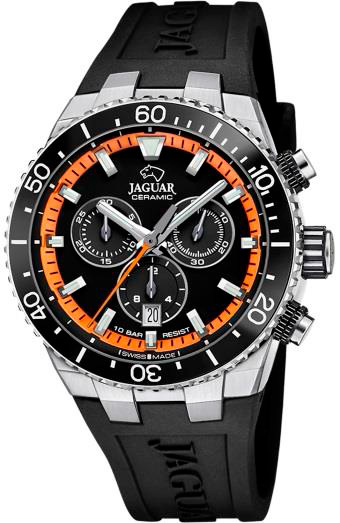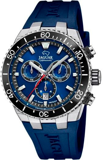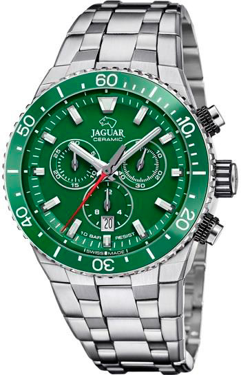 - Jaguar J1022 — пять моделей на браслете из сатинированной стали с керамическим безелем в цвет циферблата, включая вариации "Панда" и насыщенный зелёный.