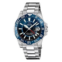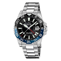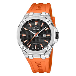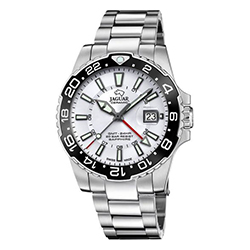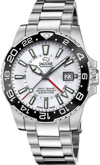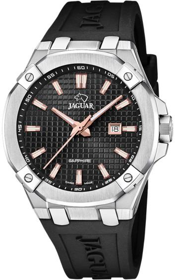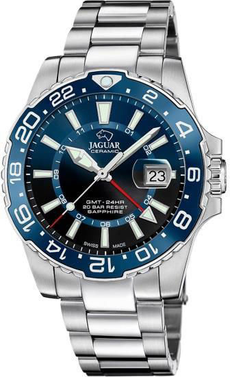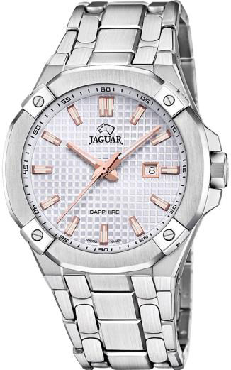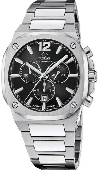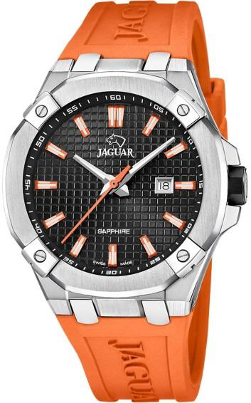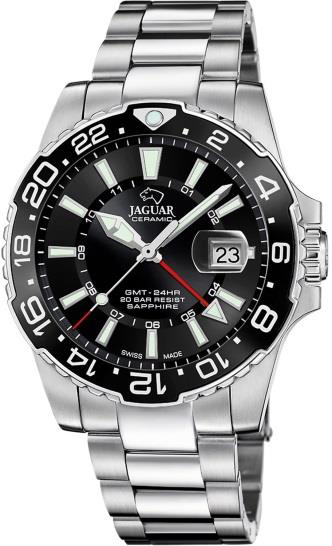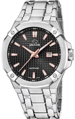 Jaguar Executive (J1011) – внушительные часы для путешественников и деловых людей. Массивный корпус в 44 мм, дополнительная стрелка для второго часового пояса и увеличительное стекло над датой делают эту модель особенно функциональной. Водонепроницаемость до 200 метров и массивный браслет подчеркивают ее уверенный характер.