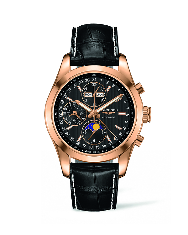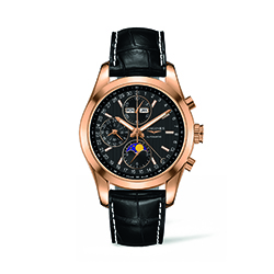 | 5. Longines Conquest Classic Moonphase L2.798.8.52.3: золотой (розовое золото 18 карат) корпус, чёрный циферблат, чёрный кожаный ремешок. | |