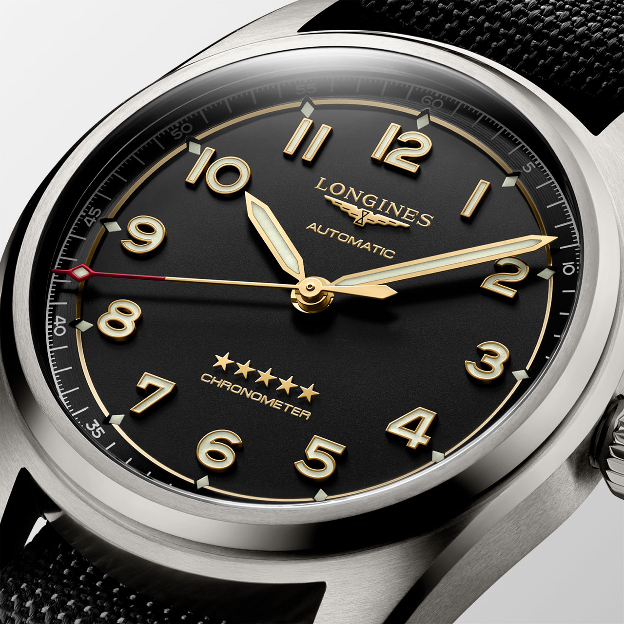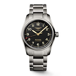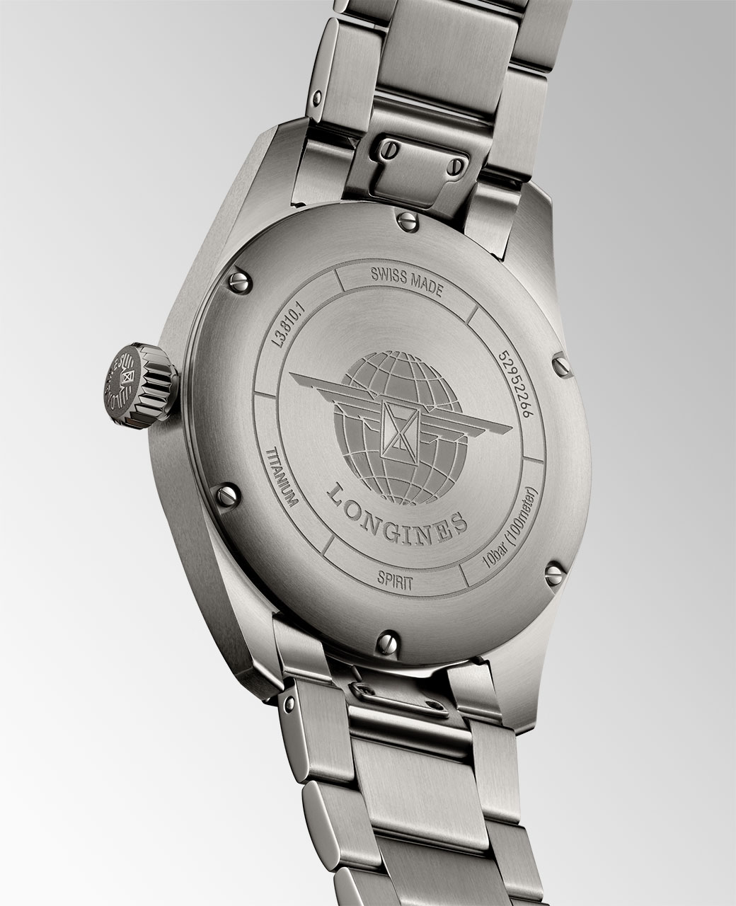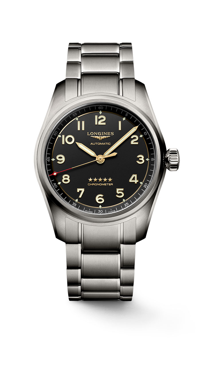 В истории Longines Spirit начинается новая эпоха — эпоха титана. Более прочный и легкий, чем нержавеющая сталь, сплав Grade 5 (титан, алюминий, ванадий) — прекрасный пример того, что прочность не всегда сопровождается большим весом. Кроме того, этот металл отличается от нержавеющей стали более темной и матовой поверхностью, что придает часам современный вид.