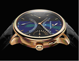 Циферблат первой модели выделяется ретроградным календарем в положении «10 часов», а циферблат второй - двойным ретроградным часовым поясом и указателем даты в положении «12» и «6 часов» соответственно. Циферблаты обеих моделей имеют накладные часовые метки из 18-каратного розового золота с алмазной обработкой, малый секундный указатель и индикатор запаса хода. Привлекательность ассиметрично расположенных указателей усиливается благодаря чистоте линий, несмотря на то, что эти линии имеют технологическую сложность.