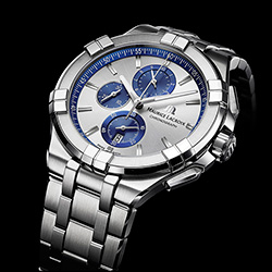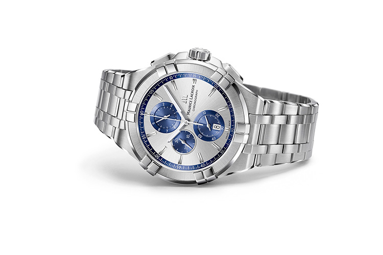 Кроме того, циферблат украшен фирменным логотипом и надписью: «Maurice Lacroix Chronograph».