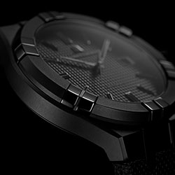 Часы AIKON Automatic – это сердце коллекции AIKON. А новая модель, полностью выдержанная в черном цвете, поднимает часовой дизайн на новые высоты. Черное PVD-покрытие подчеркивает текстуру пескоструйной обработки. Сатинирование украшает корпус часов, заводную головку и ободок с шестью выступами, которые являются отличительной особенностью часов AIKON. Как и предыдущие версии AIKON Automatic, эта модель обладает водонепроницаемостью 200 метров. Циферблат с узором Clou de Paris, установленный в часах AIKON Automatic Black, порождает уникальную игру света и тени. Выполненный в том же цвете, что и остальные элементы, циферблат подчеркивает графичность модели своим блеском, как и накладные полированные индексы и антрацитовые стрелки с черным покрытием SuperLuminova. Благодаря такому цветовому решению достигается полная монохромность изделия.