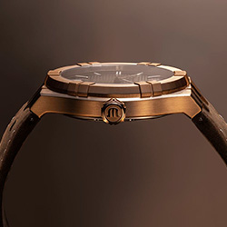 Новый AIKON Automatic Bronze - внутренняя гармония металла и шоколадного цвета, элегантность с нотками смелости. Узор Clous de Paris на циферблате с градиентом fumé, в сочетании со сдержанными индексами-палочками, не только соответствует эстетическим кодам коллекции, но и привлекает внимание ценителей часового искусства. Новая серия ограничена: 888 штук.
