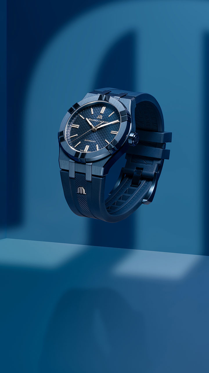 - Ремешок: каучуковый с логотипом бренда, система быстрой смены ремешка Maurice Lacroix Easy Strap Exchange