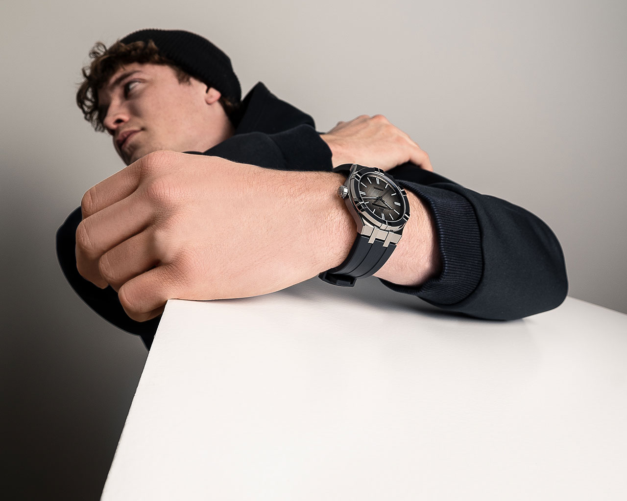 Новые модели AIKON подчеркивают индивидуальность своего владельца. Обе модели имеют PVD-покрытие, создающее металлическое сияние. Версия в корпусе 39 мм представлена в глубоком синем цвете ночного неба, а версия в корпусе 42 мм – в темно-антрацитовом цвете. Циферблат темно-антрацитовой модели украшен узором Clous de Paris и градиентом от светлого центра к темной периферии. Часы AIKON отображают основные показатели времени – часы, минуты и секунды, что делает их идеальными для ценителей минимализма.