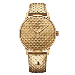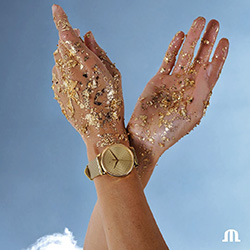 С появлением Eliros Sunshine Морис Лакруа отказался от консервативных тонов в пользу теплых золотистых оттенков и сказочно богатых текстур. Действительно, поверхность циферблата и сопутствующего ремешка имеет пирамидальную текстуру. Сапфировое стекло защищает поверхность циферблата. Тактильная форма ремешка вызывает желание прикасаться к нему.