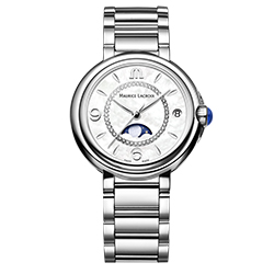 Модель Fiaba Moonphase дополнена практичным браслетом из нержавеющей стали с тремя рядами звеньев и раскладывающейся застежкой. Множество роскошных деталей придают этим часам дополнительную ценность, что еще раз подтверждает репутацию марки Maurice Lacroix как компании, создающей отличные часы по оптимальной цене.