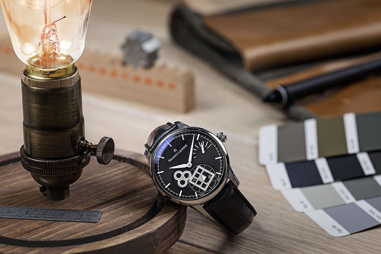 Так, циферблат модели «Maurice Lacroix Masterpiece Square Wheel Classic» выполнен в чёрном цвете, очерчен по контуру белой минутной шкалой и украшен спиралевидным узором «Grand Colimaçon» («Большая улитка»). Условные индексы часов, а также деления указателя запаса хода покрыты родием. Круглые выемки, оттеняющие квадратное колесо и колесо в форме трилистника, темнее цвета циферблата. Материалом изготовления квадратного колеса, используемого как счётчик секунд, и колеса-трилистника является никель. Треугольный указатель секунд покрыт белым люминесцентным составом «голубое свечение». Центральные остроконечные стрелки часов и минут с люминесцентным покрытием, а также указатель запаса хода отделаны родием.