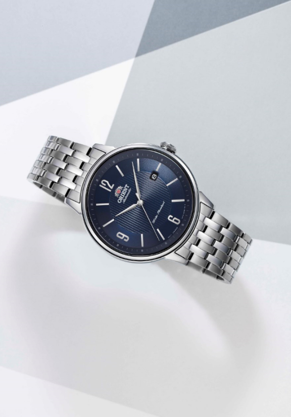 Во всех новинках коллекции ORIENT Contemporary новый механизм собственного производства. Благодаря прозрачной задней крышке можно наблюдать за его превосходной работой. Общий дизайн с тонким безелем, широким циферблатом и ушками крепления браслета способствует лучшему прилеганию часов к запястью. Эти особенности дизайна подчеркивают простой и изысканный внешний вид часов. Металлические звенья браслета и пряжка регулируются по размеру.
