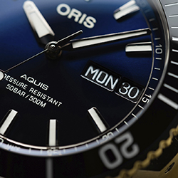 Oris Aquis Big Day Date – стильные, высокофункциональные, привлекательные часы для дайверов. Модели современной коллекции Aquis задуманы как динамичные и вместе с тем утонченные часы, которые станут надежным приспособлением в подводном погружении и вместе с тем комфортным аксессуаром в деловой жизни.