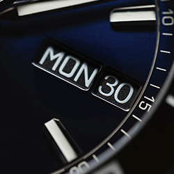 - Синий циферблат с эффектом солнечного отлива и накладными метками с люминофором Super-LumiNova®.