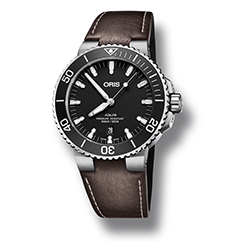 - Также в наличии модели на темно-коричневом кожаном ремешке с раскладывающейся застежкой со скользящим устройством настройки длины ремешка и удлинителем. Либо на черном каучуковом ремешке с разработанным Oris предохранительным якорем и раскладывающейся застежкой со скользящим устройством настройки длины ремешка и удлинителем.