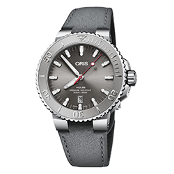 Источником вдохновения в разработке дизайна часов Oris Aquis Date Relief послужил цвет воды и его восприятие. Серый циферблат напоминает цвет штормового моря, а фирменные рельефные маркеры дайверской шкалы окружены фактурной поверхностью как напоминание водной ряби.