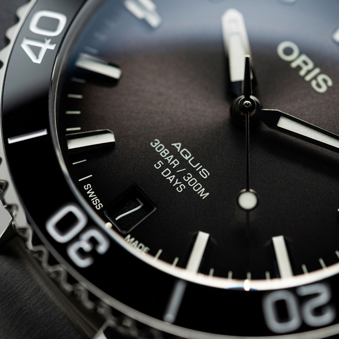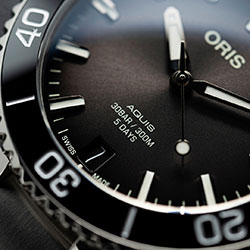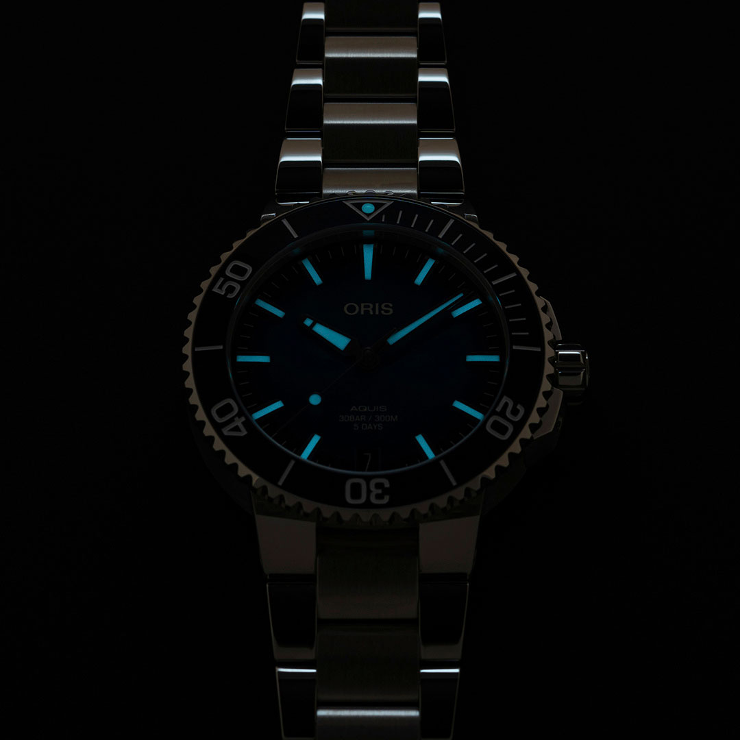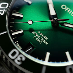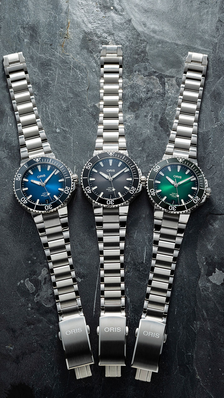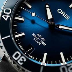 Впервые Oris Calibre 400 используется в модели Aquis Date с уменьшенным корпусом 41,5 мм. Дайверские часы предлагаются с циферблатом синего, антрацитового или зеленого цвета.