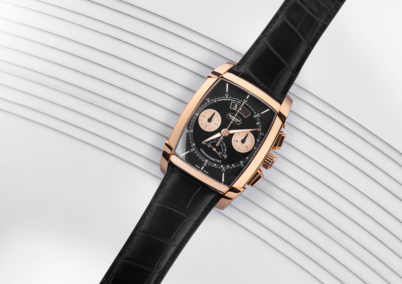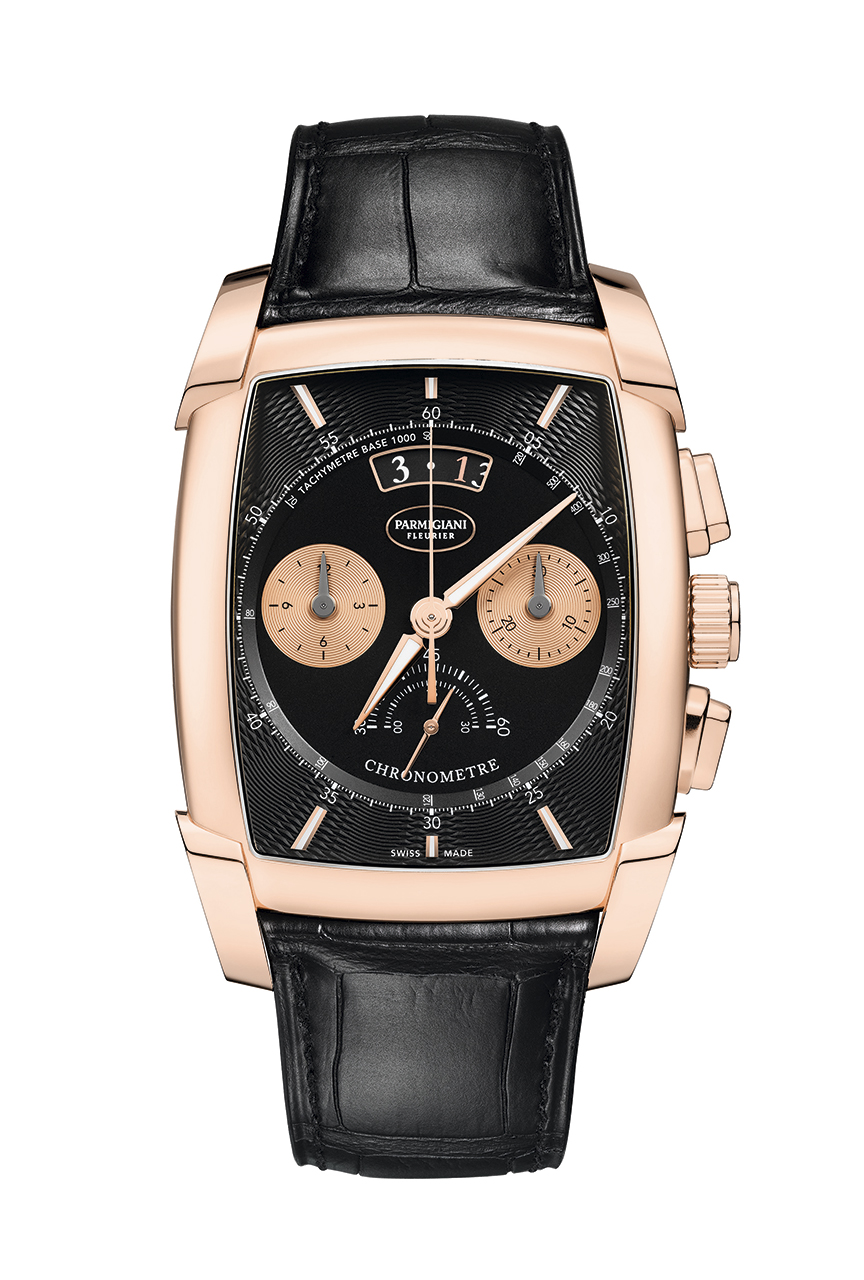 Возможность серийного производства интегрированного хронографа – показатель высочайшего уровня успешной часовой мануфактуры. В 2016 году Parmigiani Fleurier достигла его в первый раз, выпустив часы круглой формы Tonda Chronor Anniversaire. В 2018 году уровень был подтвержден снова бочкообразным механизмом, выпущенным в ознаменование 20-летнего юбилея первого фирменного калибра, приведшего к появлению семейства Kalpa.