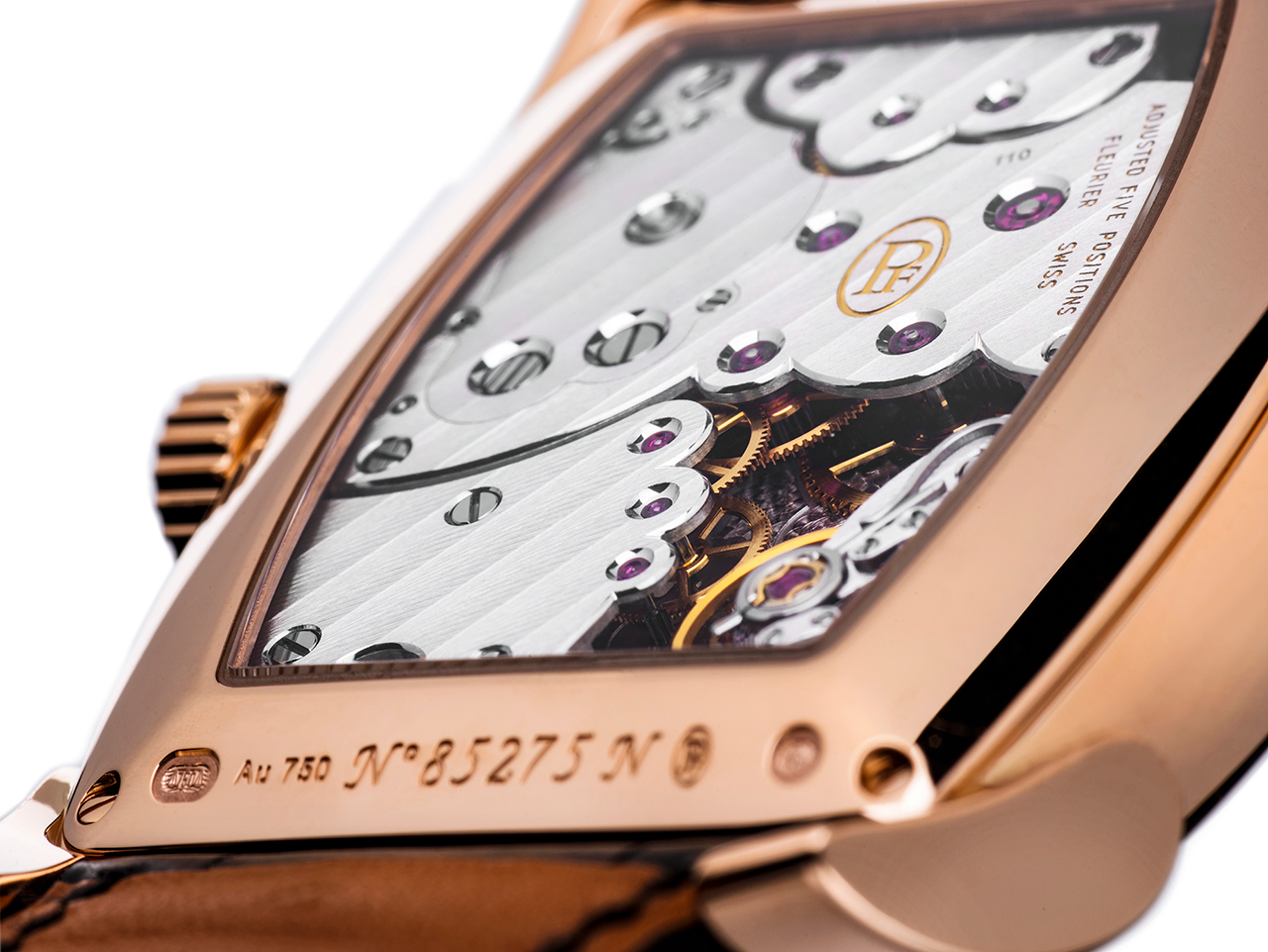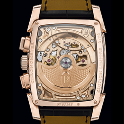 В модели Kalpa Chronor установлен первый в мире механизм интегрированного хронографа из чистого золота. Бочкообразные часы в корпусе из 18-каратного розового золота размерами 48,2х40,4 мм укомплектованы исключительным мануфактурным механизмом, на разработку и производство которого ушло более шести лет. Сертифицированный COSC калибр PF365 работает с частотой 36000 полуколебаний в час (5 герц), что позволяет засекать время с точностью до десятых долей секунды. Обладая 65-часовым запасом хода, этот образец высокого часового искусства оборудован колонным колесом и вертикальным сцеплением – признаками высокой точности и удобства использования – и изготовлен из 18-каратного золота.