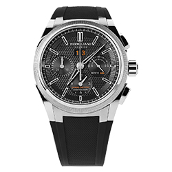 Модель Tondagraph GT работает на автоматическом калибре PF043 и обладает двумя самыми востребованными усложнениями: годовым календарем и хронографом. Этим необычным сочетанием функций Parmigiani Fleurier заполнила пробел в часовом мире, представив их в редком по уровню исполнения качестве и к тому же по исключительной цене. Циферблат изобилует указателями, но при этом легко читается. В наличии дельтовидные часовая и минутная стрелки с черным люминесцентным покрытием, малый секундный счетчик, два накопителя хронографа и большое окно указателя даты на «12 часах». Для привлечения внимания к функции годового календаря дата и месяц показываются ярким оранжевым цветом. Эти впечатляющие часы водонепроницаемы до 100 метров, имеют завинчивающуюся заводную головку, а их механизм с 45-часовым запасом хода, открытый для обзора со стороны задней крышки, украшен узором «Женевские Полосы». Тираж Tondagraph GT ограничен 200 экземплярами.