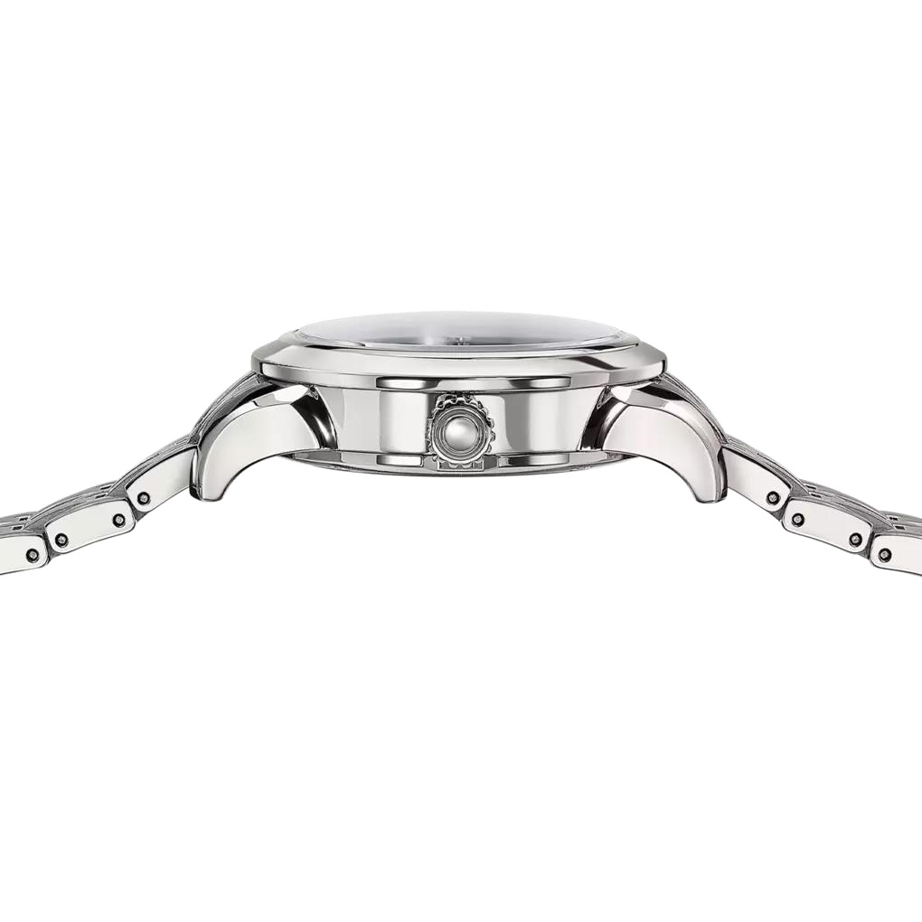 Циферблат из перламутра и 12-часовой маркер в виде одиночного бриллианта создают ювелирное впечатление, а автоматический калибр P-181-H с двойным ротором обеспечивает плавность хода и запас хода 42 часа.