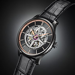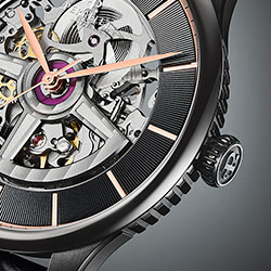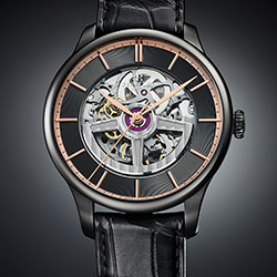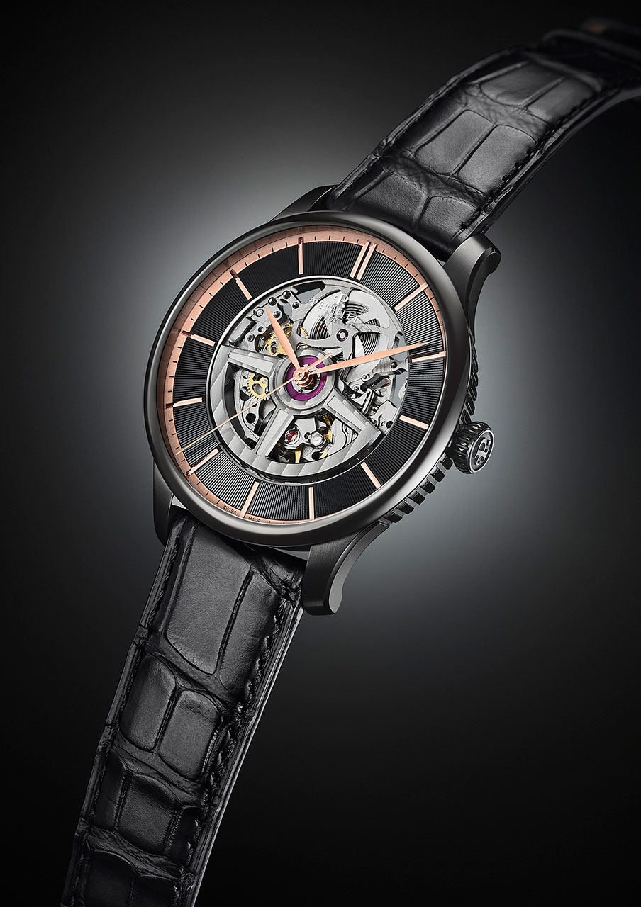 Модель First Class Double Rotor Black Edition представлена в стальном корпусе диаметром 42 мм, с водозащитой 50м/5АТМ и впервые в этой линейке – с черным PVD покрытием.
