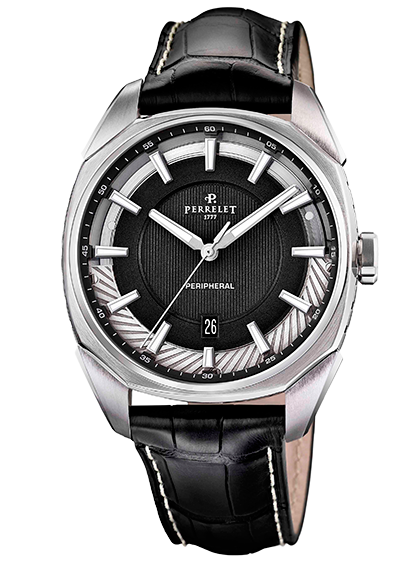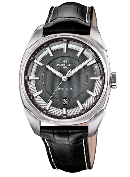 Швейцарская компания «Perrelet S. A.» – относительно молодой, но весьма авторитетный представитель швейцарской часовой индустрии. Её продвижение на часовой рынок страны и мира началось в 1993 году. Тем не менее, компания изначально позиционирует себя в качестве преемника традиций и ценностей, заложенных гениальным часовым мастером Абрахамом-Луи Переле, который создал в 1777 году первый в мире автоматический часовой механизм. Следуя выбранным один раз и навсегда ориентирам, компания «Perrelet S. A.» в своём творчестве стремится постоянно удивлять ценителей и поклонников Высокого часового искусства. Perrelet регулярно обновляет свои коллекции и создаёт новые шедевры с инновационными технологическими решениями, высокой надёжностью, потрясающей точностью и безупречной отделкой. На этот раз компания «Perrelet» преподнесла сюрприз своим поклонникам и потенциальным клиентам выпуском новой коллекции с ёмким, но запоминающимся (пусть и не очень романтичным – «Лаборатория», но подчёркивающим всю серьёзность творческого процесса Perrelet) названием «LAB». Новая перспективная коллекция «LAB» представлена пока тремя моделями, которые почти идентичны и отличаются только цветом циферблата. Но эти модели имеют такие особенности, которые существенно перевешивают определённую и наверняка преодолимую в будущем эстетическую недосказанность. Итак, часы коллекции «LAB» – это оригинальная форма и структура корпуса, новый калибр, особая архитектура циферблата с вынесенным на его скелетонированную периферию декорированным ротором (на что обращает внимание надпись «Peripheral» на циферблате). Ну и, конечно же, безупречная отделка каждой детали часов этой восхитительной коллекции, которая не может не заинтриговать.