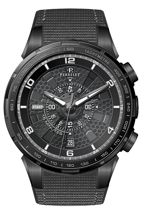 Технология Turbine, разработанная на мануфактуре в 2009 году и быстро ставшая знаковой для бренда Perrelet, впервые использована в хронографе в 2013 году. Эта непростая задача успешно реализована благодаря высочайшему уровню технического мастерства часовщиков и дизайнеров компании.