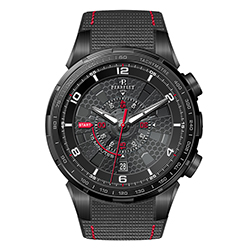 Часы Turbine Chrono Sport снабжены черным ремнем, выполненным из двух материалов: черного нейлона с каучуковой подкладкой, с красной или серой прострочкой – в зависимости от версии. Стальная клипсовая застежка с черным PVD-покрытием украшена логотипом Perrelet.