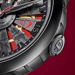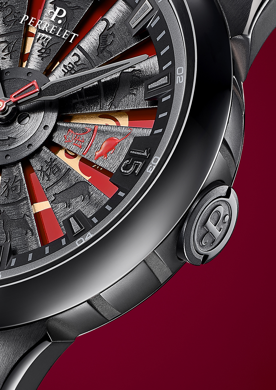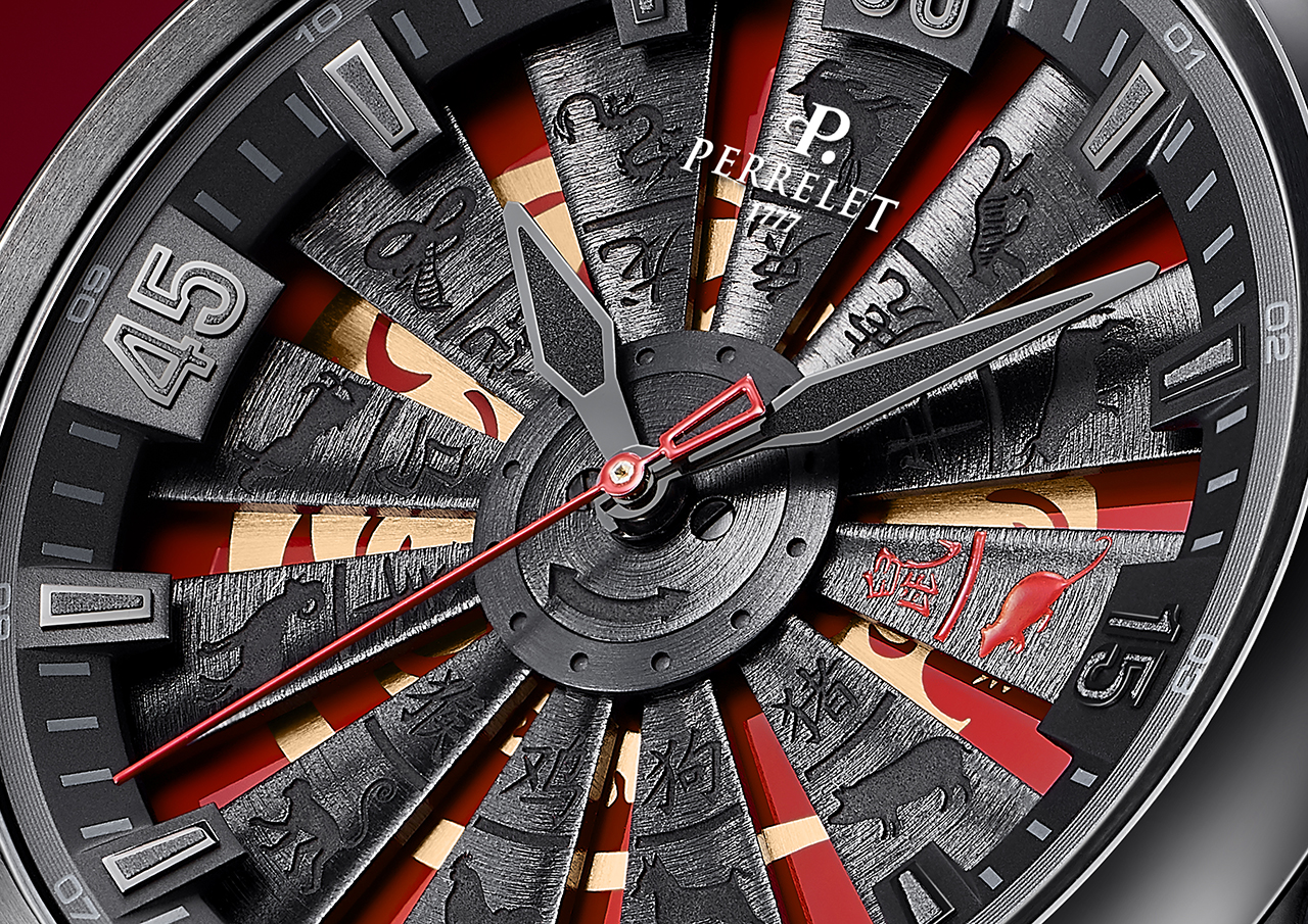 Одна из отличительных черт новой модели – турбина в специальном варианте исполнения. Лопатки турбины, изготовленные из анодированного алюминия, декорированы гравированными изображениями всех 12 существ китайского зодиакального цикла, дополненными соответствующими китайскими иероглифами. Изображение крысы, главного героя и символа 2020 года, выделено насыщенным красным цветом.