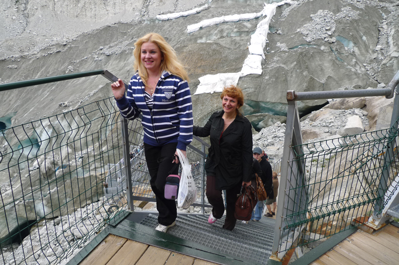 С плато мы стали подниматься вверх, но уже не по канатной дороге, а по маленьким лесенкам. Идем, смотрим вокруг, кажется - гора, а там лед. Оказалось , самый большой ледяной грот. Это одна из самых знаменитых достопримечательностей Монблан.