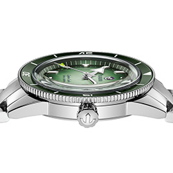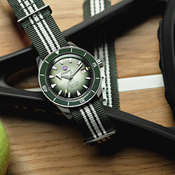 Captain Cook x Cameron Norrie Limited Edition, выпускается в корпусе диаметром 42 мм и вращающимся безелем из керамики, отражает волевой характер тенниса. Цветовая гамма циферблата, стрелок и вставок подчеркивает тему теннисного поля, а элементы Super-LumiNova® обеспечивают отличную видимость.